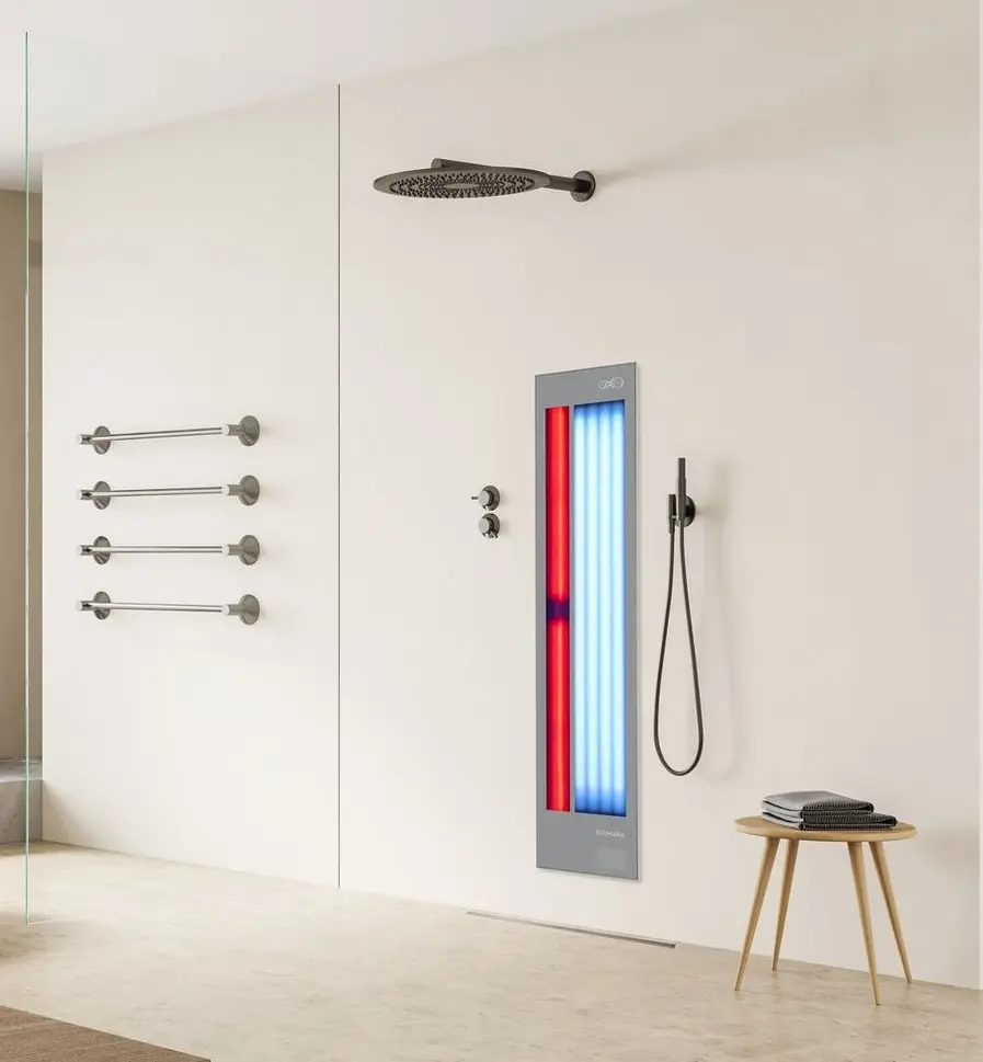 De Feel Good Shower transformeert je badkamer in een herstelruimte. Full-spectrum infrarood (IR-A, IR-B, IR-C) dringt door in je spieren, ontspant ze en stimuleert de doorbloeding. Ons eigen whitepaper laat zien hoe infraroodwarmte spierherstel ondersteunt. Onafhankelijk ESA-onderzoek bevestigt daarnaast dat UV-licht de natuurlijke aanmaak van vitamine D bevordert. Met 25+ jaar expertise en vertrouwd door 100.000+ gebruikers wereldwijd. Geen extra tijd nodig – gewoon dagelijks herstel tijdens het douchen.